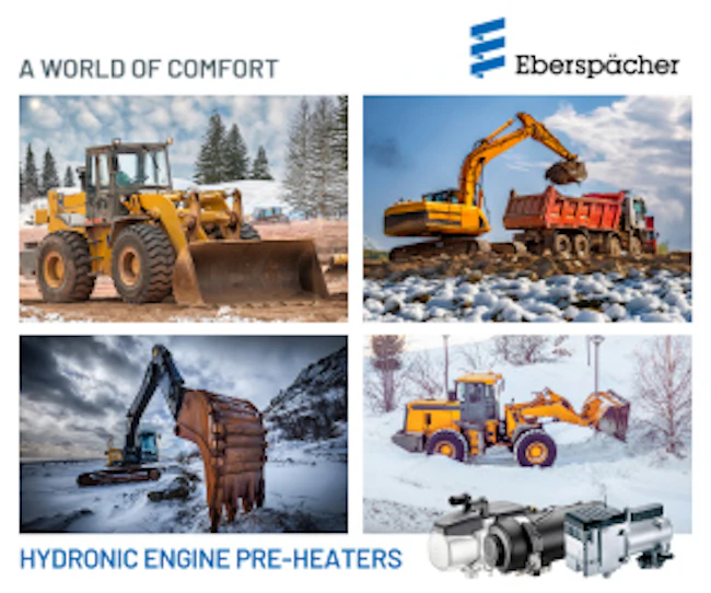 | | Sponsored | | Eberspächer’s fuel-operated heaters are ideal for the construction industry. The Airtronic S3 Commercial/M air heater provides fast, efficient warmth, ensuring operator comfort in harsh conditions. The Hydronic S3 Commercial water heater keeps engines warm, reducing wear and tear. These rugged, fuel-efficient heaters are built to perform in demanding environments. |